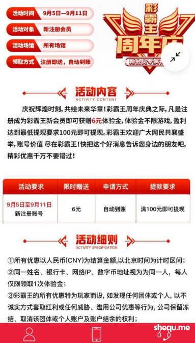 彩霸王注册6元彩金